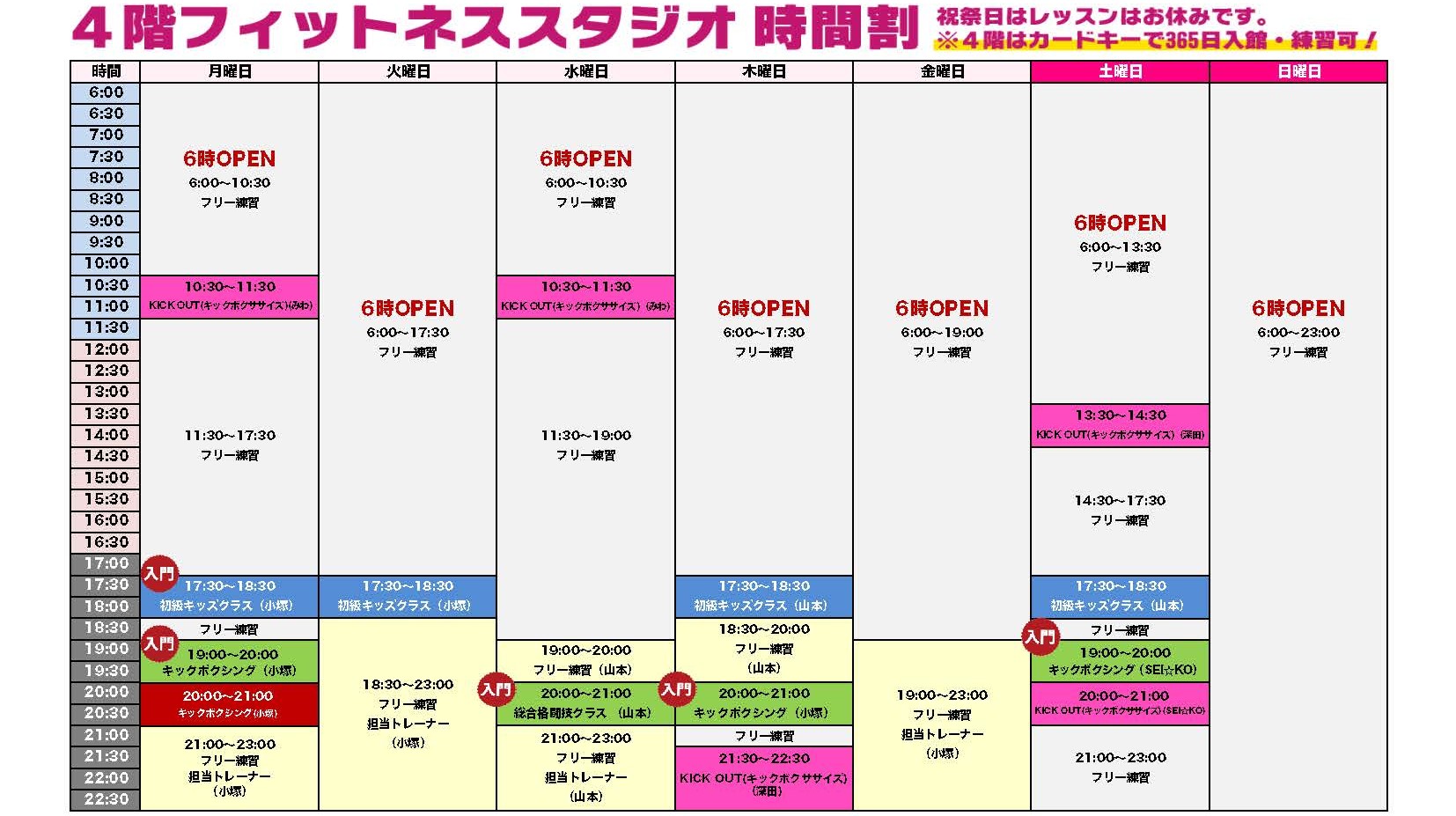 インストラクターのスケジュールは下記参照